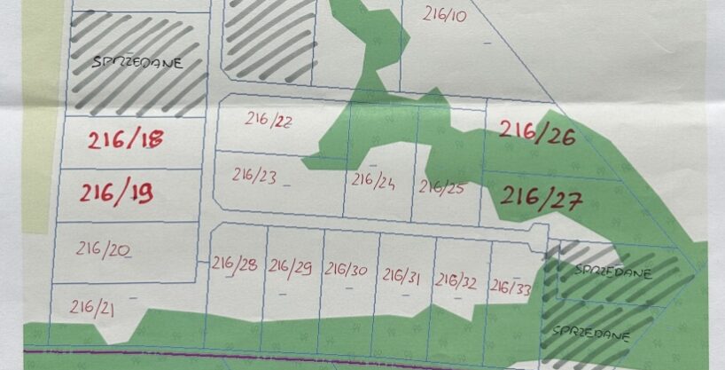 – nr 216/27 o powierzchni 2214 m2 + udział w drodze 97 m2, cena 154.830 PLN.