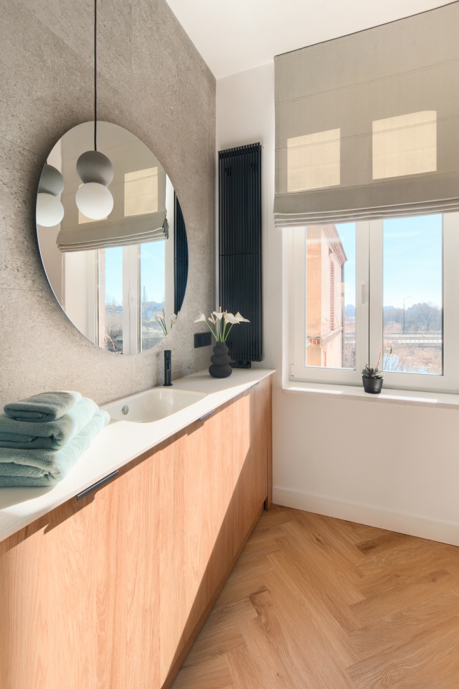 – na podłodze najwyższej jakości panel winylowy ułożony w jodełkę,