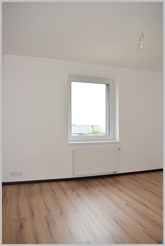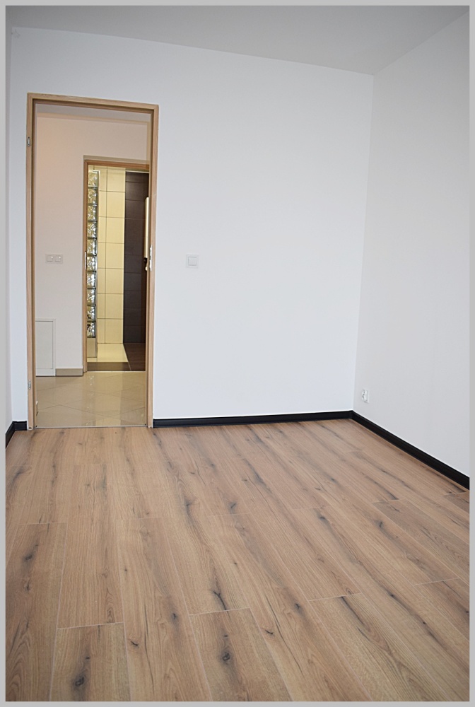* Pokój dzienny, sypialnie: na podłogach panele, na ścianach gładzie, tapety.