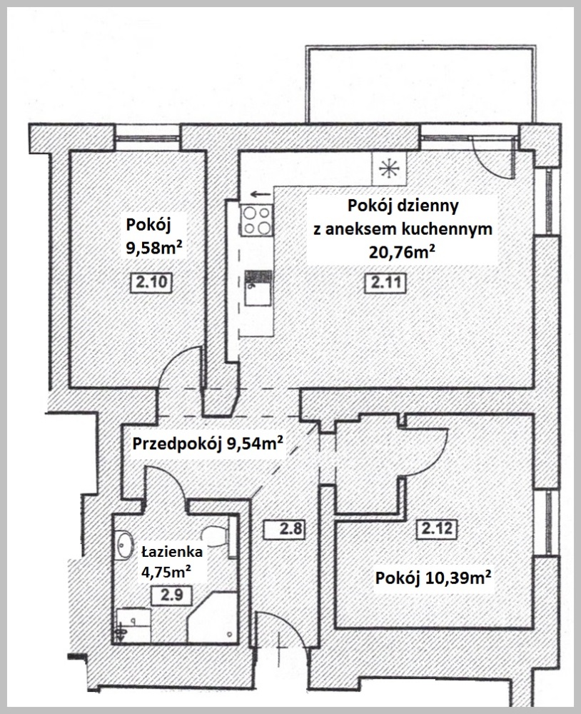 – Pokój dzienny z aneksem kuchennym 20,76m²,