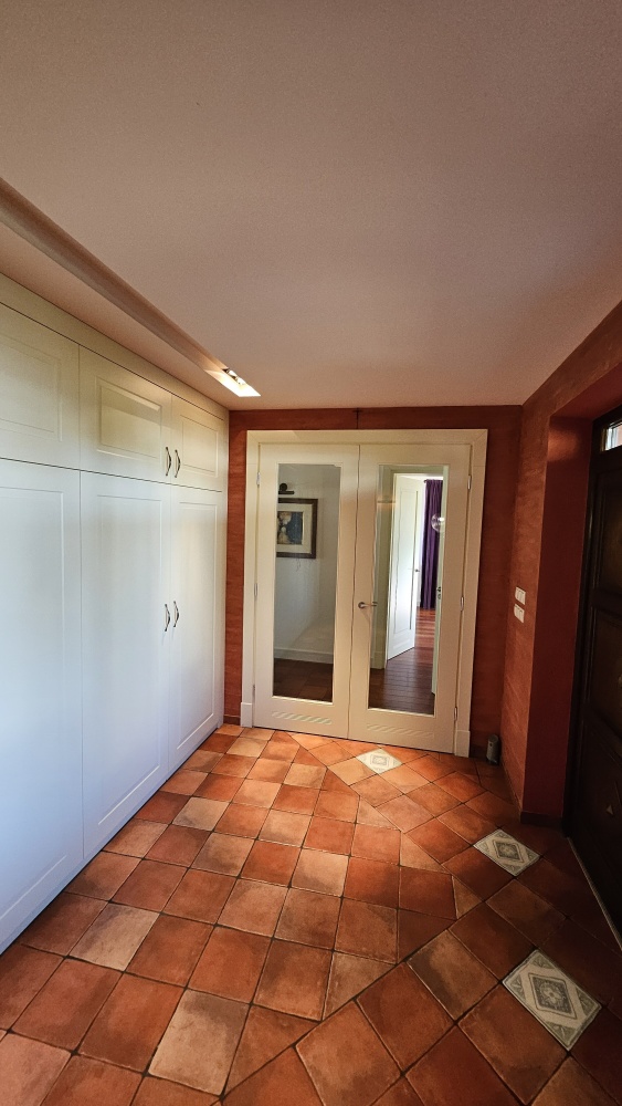 Dom wolnostojący, przestronny, komfortowy, położony w spokojnej części Łomianek Dolnych, przy ul. Karola Szymanowskiego 30. To moja ocena, więc może subiektywna, ale dom jest przepiękny, w stylu śródziemnomorskim. Układ pomieszczeń jest bardzo funkcjonalny. Całe wnętrze odnowione, całkiem nowa kuchnia. Od remontu nikt nie mieszkał więc można powiedzieć, że wnętrze prawie jak nowe. Gotowy do zamieszkania. Powierzchnia mieszkalna około 295 m², całkowita z garażem około 330 m². Foremna działka w kształcie prostokąta o powierzchni 1211 m². W ogrodzie piękne, dojrzałe rośliny, ukazujące swój urok w sezonie wiosenno-letnim, dające dużo intymności. Automatyczne podlewanie ogrodu. Garaż na dwa auta. Dojazd drogą asfaltową, wszystkie media. Dom idealny dla kogoś kto lubi przestrzeń, dla rodziny, do pracy zdalnej. W sumie 7 pokojów, otwarty salon z jadalnią i aneksem kuchennym, pralnia, miejsce na siłownię i saunę, garderoba przy sypialni głównej, dwie łazienki na piętrze, toaleta na parterze, poddasze użytkowe. Cicha okolica, dobry dojazd do Warszawy.