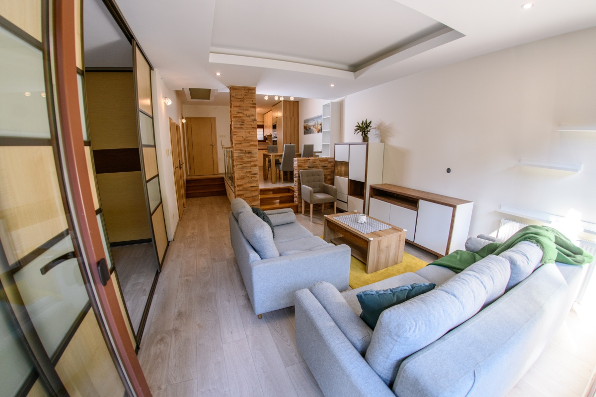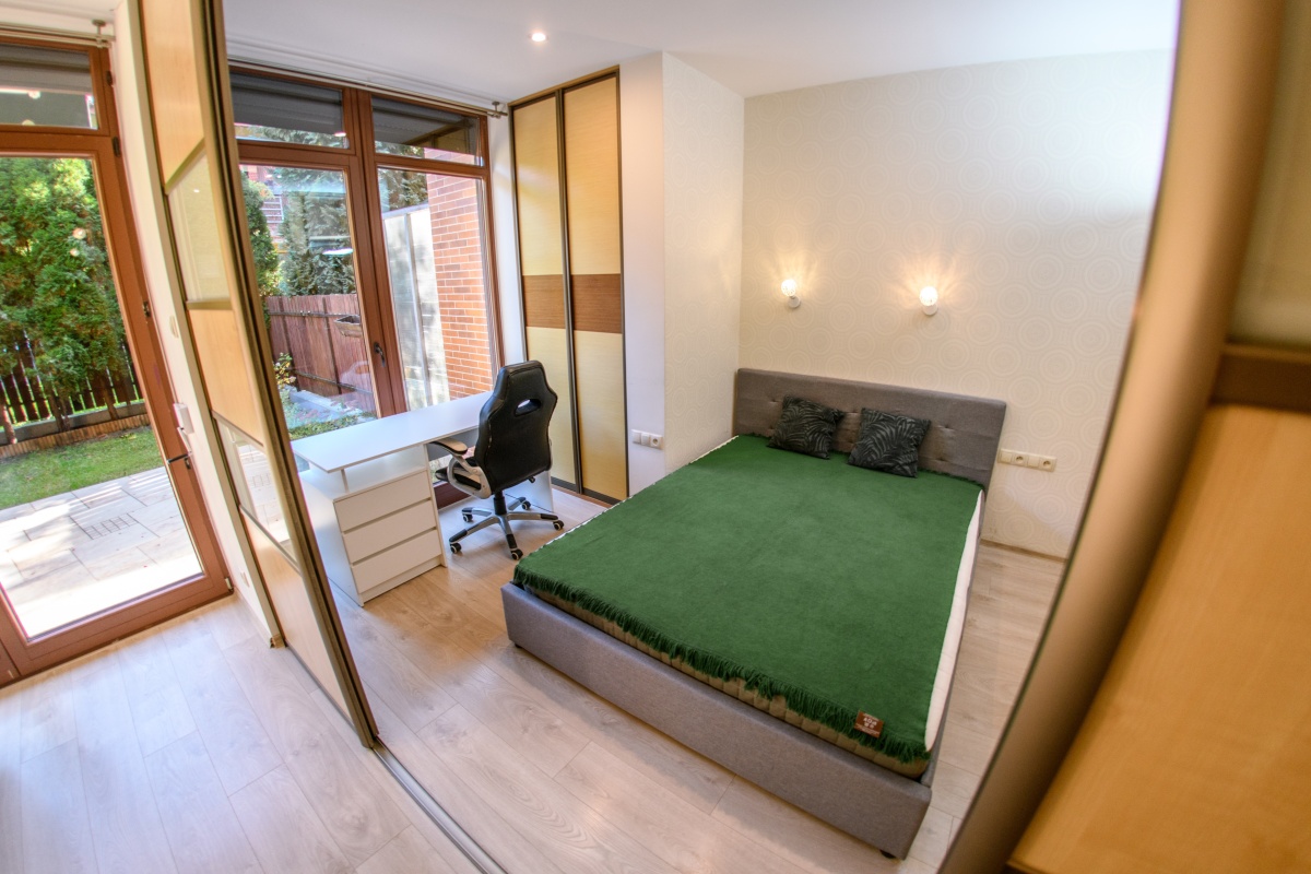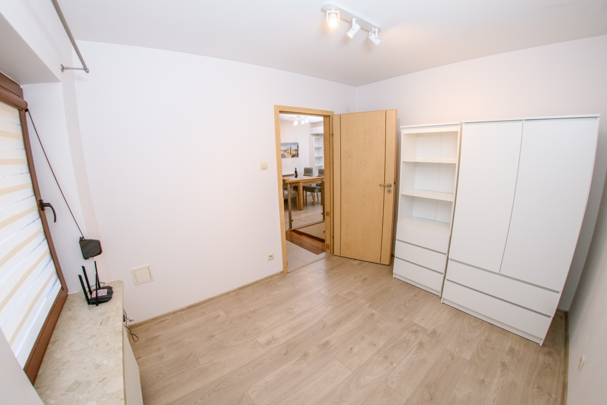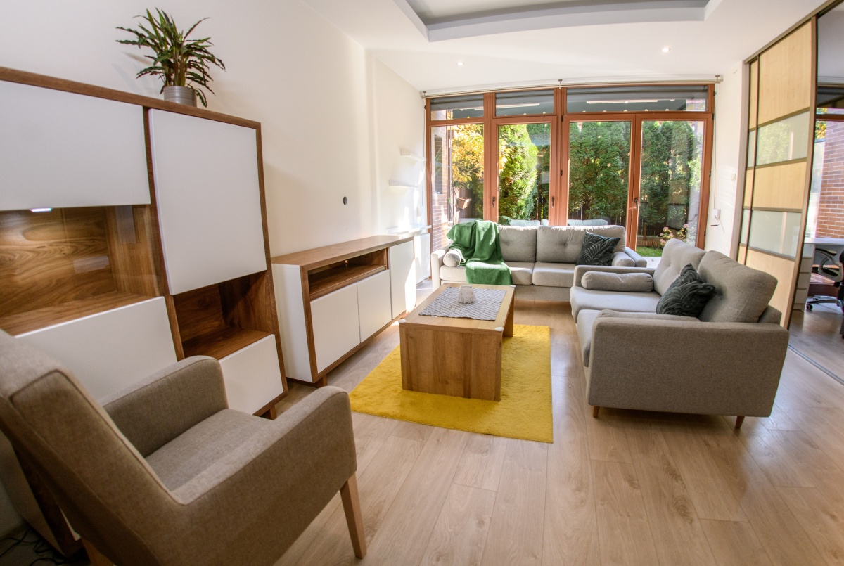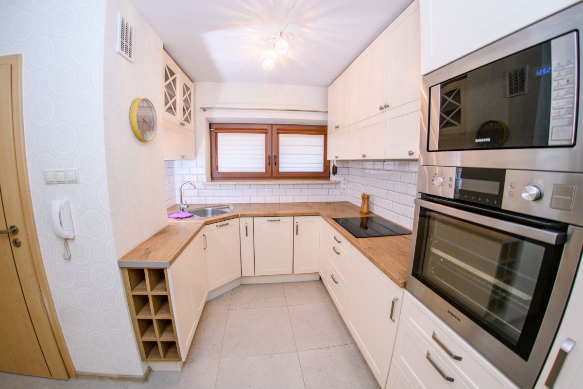 The apartment is located in a green part of Kraków, close to parks and recreational spaces. The entry to Wolski Forest is only 500 meters from the gate. This quiet residential neighborhood has good infrastructure: public transport, sports facilities, restaurants, schools, shops, and services. The closest bus stop is within 5 minutes walking distance from the gate.