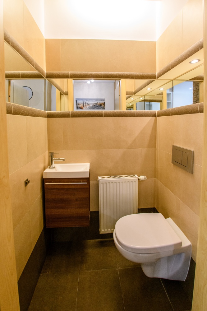 – Kitchen: cupboards and equipment: a refrigerator, dishwasher, stove, oven and build-in washing machine