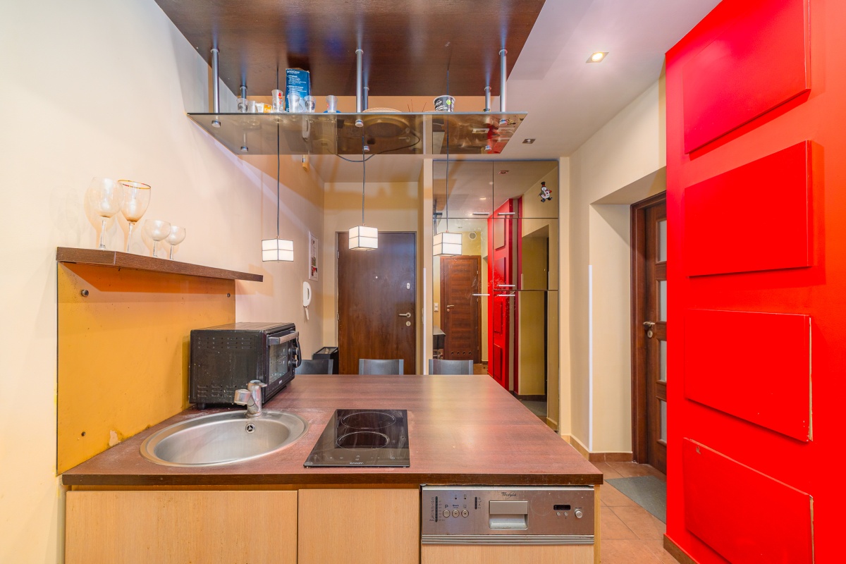 – aneks kuchenny z jadalnią umiejscowiony w dawnym przedpokoju o powierzchni ponad 10 metrów i wymiarach 4,6 na 2,2 metrów