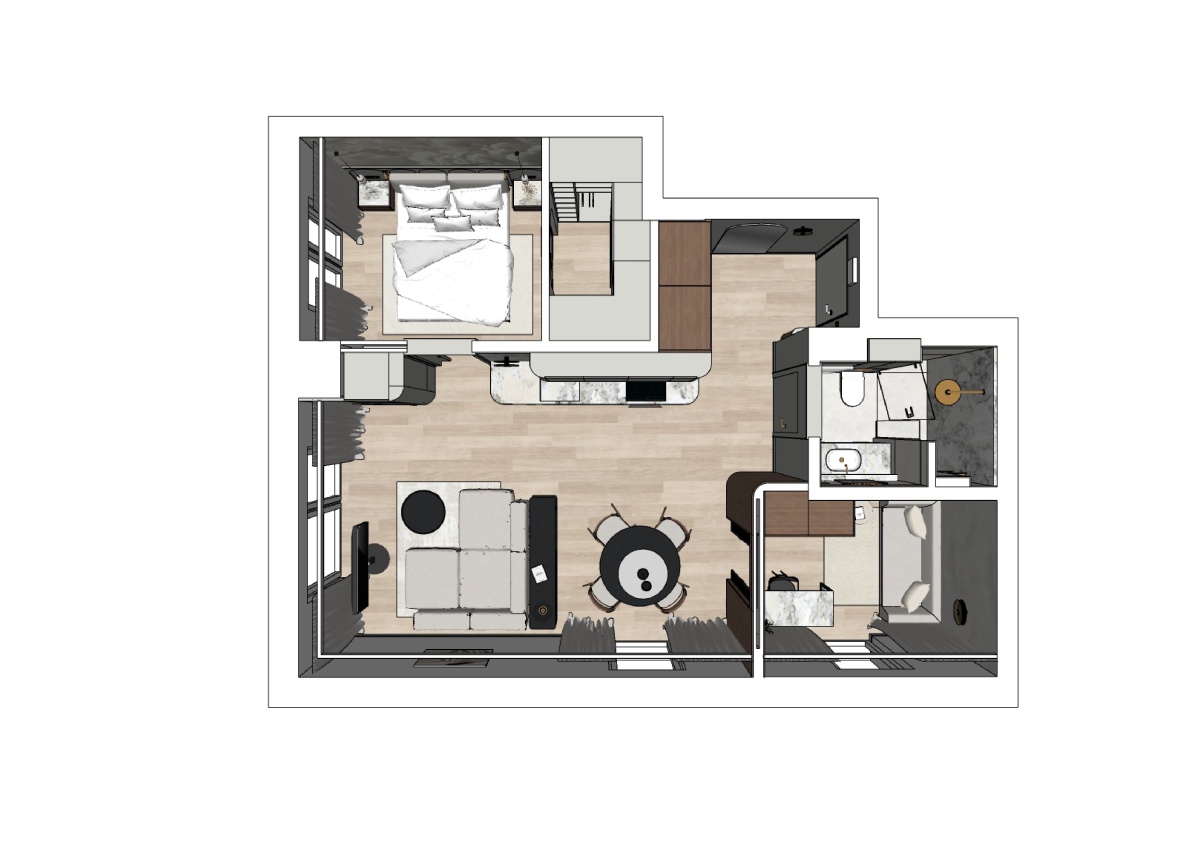 Dla mieszkania przygotowany jest projekt wykończenia pod klucz jak na wizualizacjach. Sprzedaż razem z gotowym projektem do dostosowania przez architekta.