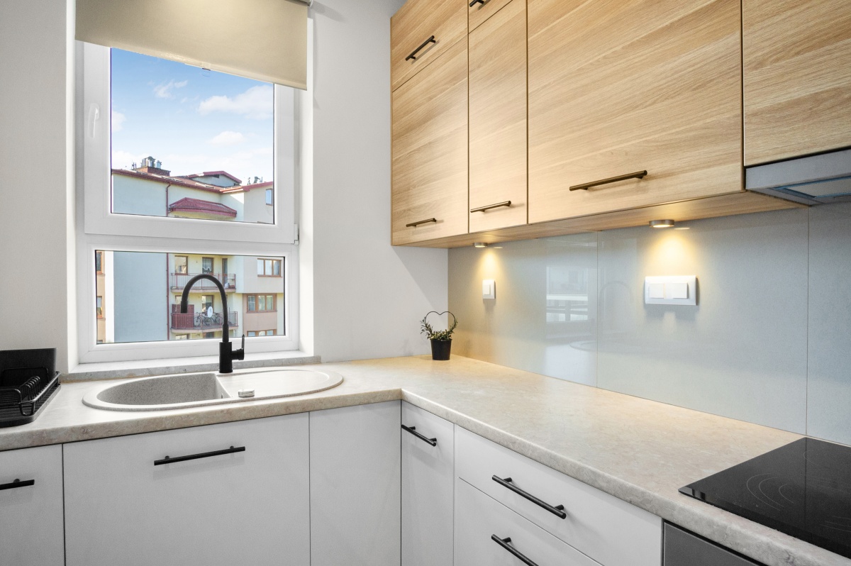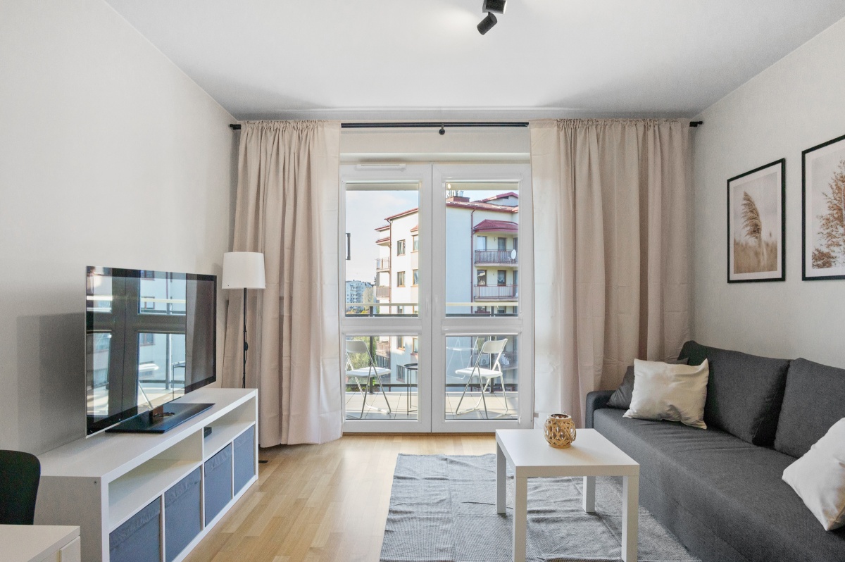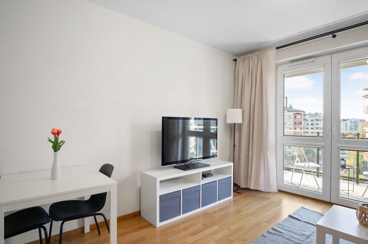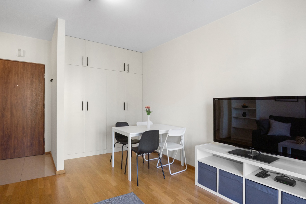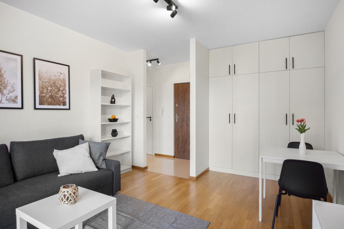 For rent: bright, fully furnished studio in a secure apartment building in the very center of Ursus (Skorosze XI estate). The apartment is on the 5th floor. Safe, fast-growing neighborhood with excellent connections to the city center and numerous shops and shopping malls nearby.