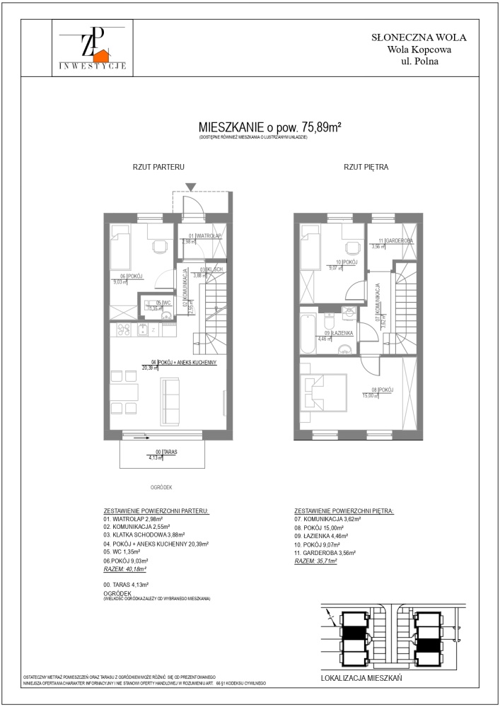 W ofercie posiadamy 2 wielkości mieszkań: