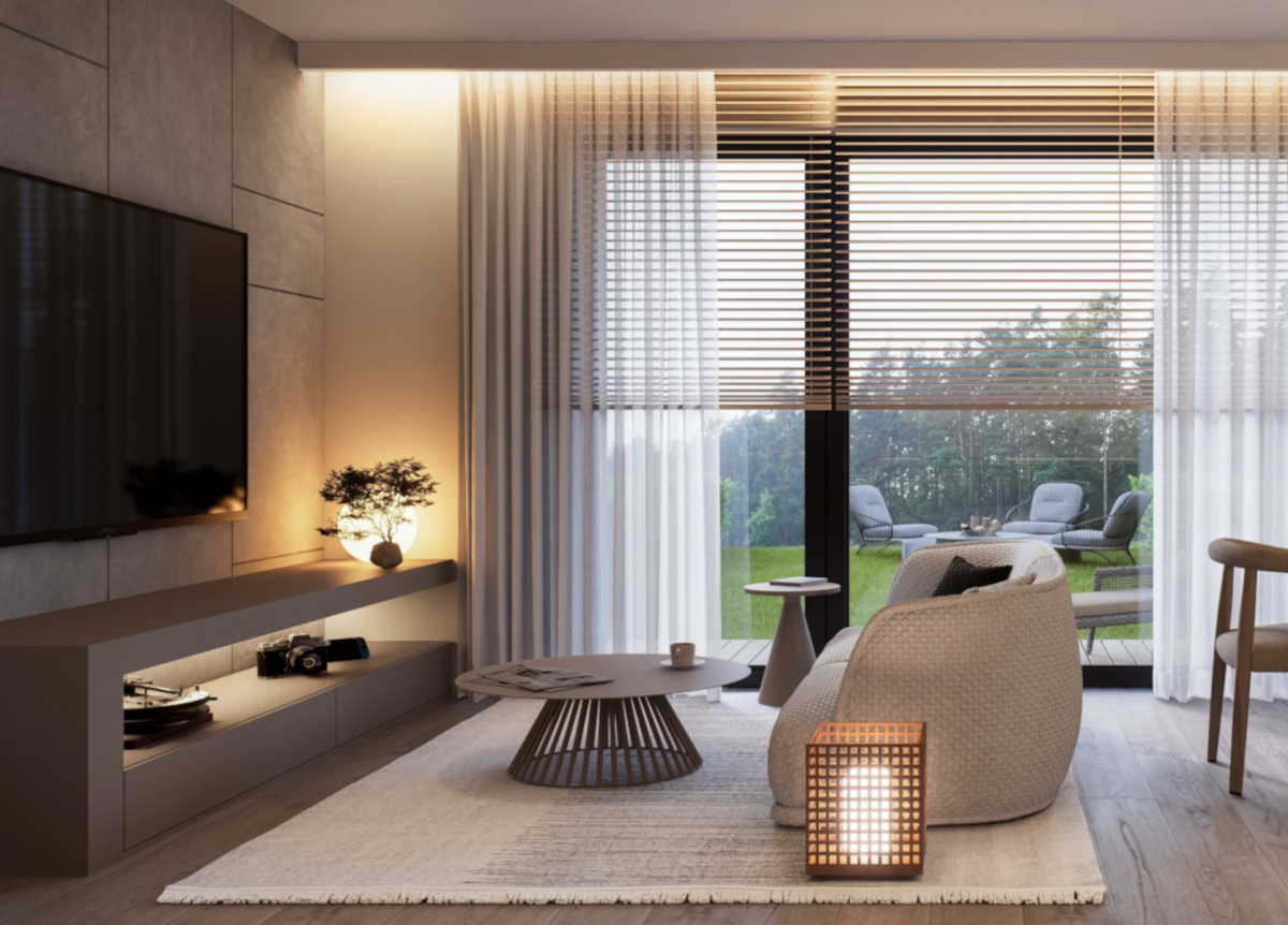 – duże przeszklenia, nowoczesny taras, prywatny ogródek oraz duży strych nad mieszkaniem