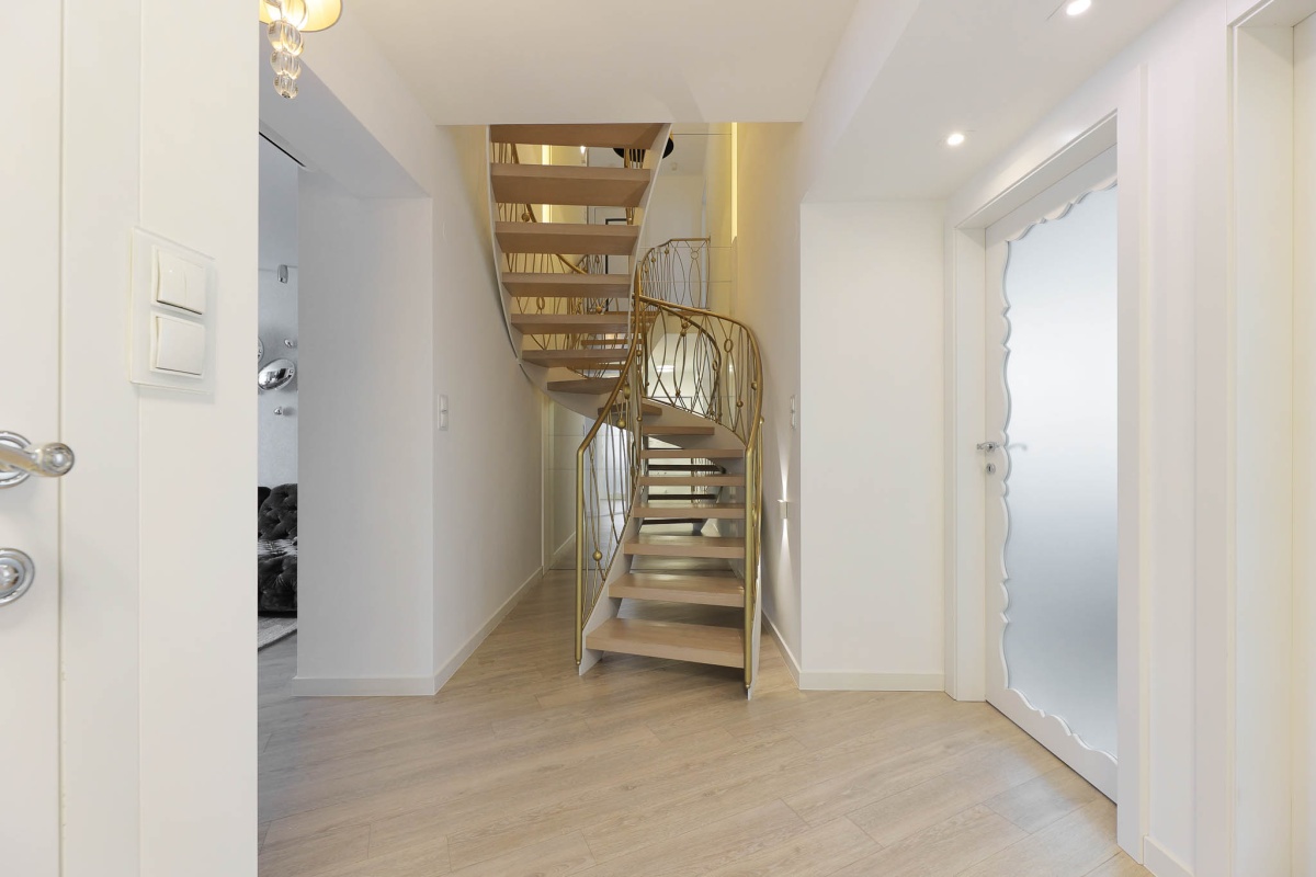 Powyższy rozkład pozwala cieszyć się komfortem zamieszkiwania porównywalnym z domem, bez rezygnacji z korzystania z uroków centrum miasta oraz wyznacza wyraźny podział między strefami dzienno-wypoczynkową, a sypialnianą na piętrze. Do lokalu przynależą (w cenie zakupu) usytuowane blisko windy podziemne miejsce postojowe wyposażone w ładowarkę samochodową oraz sporych rozmiarów (ok. 3,5 m2) komórka lokatorska. Istnieje również możliwość dokupienia drugiego miejsca postojowego za kwotę 45 000 zł.
