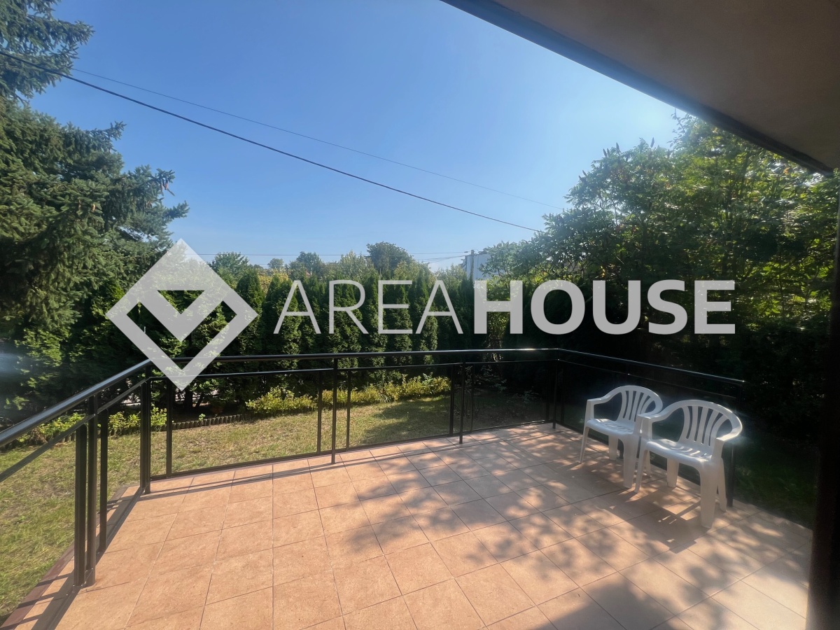 Dom znajduje się na dużej, ogrodzonej działce o powierzchni 1000 m², z zadbanym ogrodem, tarasem i balkonem.